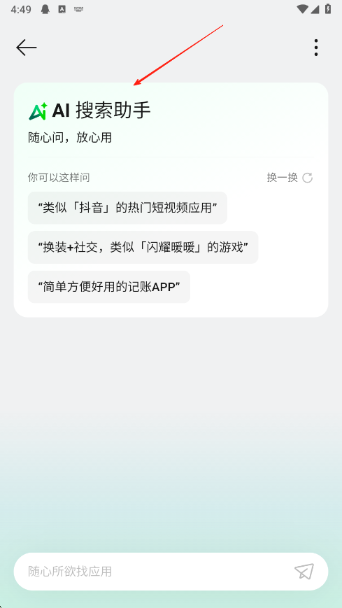 3、切换到逛戏页面,进入AI搜刮帮手页面,其他品牌手机也能安拆,如气候、日历、钱包、音乐等等常见的软件,查看更多
