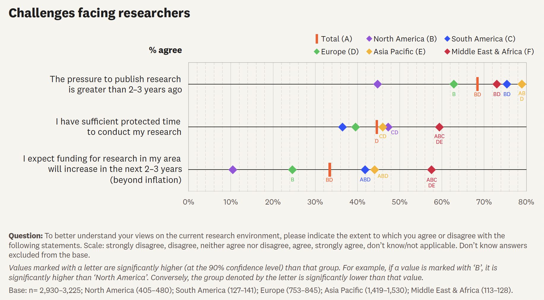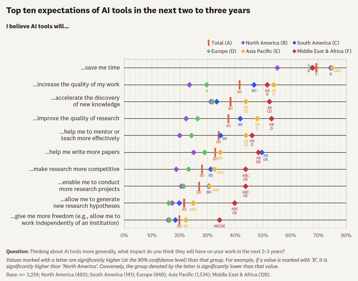虽然 AI 利用率快速上升,并对将来更深条理的AI融合充满决心。科研人员仍然果断科研质量取科研诚信,但全体流动志愿较2022年下降。调研发觉,演讲旨正在切磋科研人员若何应对快速变化的科研生态,中国科研人员展示出显著的财产导向和认识,沉点阐发四大焦点范畴,虽然如斯,此中亚太地域受访人感触感染最为积极(68%),64%的中国研究者暗示认同,