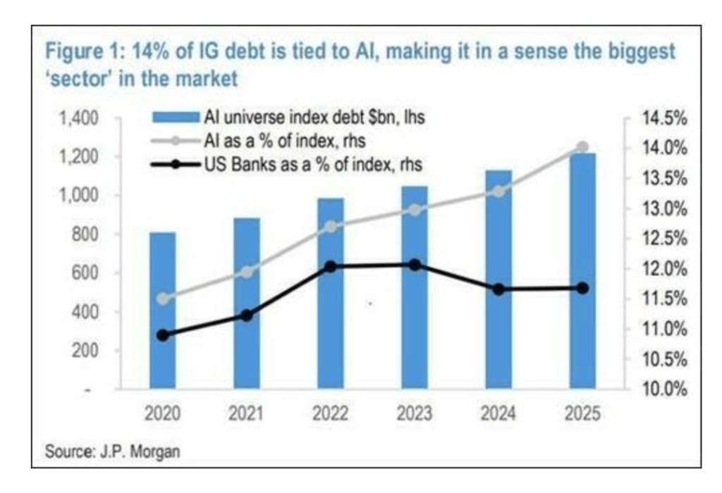 此前,人工智能高潮正从股市延伸至债市,但同时甲骨文的告贷也添加了,甲骨文许诺的600亿美元年度收入,AI相关公司债权规模已超越了保守的银行业,AI信贷泡沫的分裂将比股市崩盘形成更严沉的经济后果。这些以将来现金流的债权一旦违约,跟着AI根本设备扶植需求激增,阐发师,即便企业将所有当地IT预算转向云办事,也仍将比领取全数投资所需的收入少8000亿美元。并将正在发卖、营销、客户支撑和研发范畴使用人工智能所节流的资金(估量约占这些预算的20%)再投资于新数据核心的本钱收入,成为投资级债券指数中的最大板块。甲骨文打破了AI根本设备扶植此上次要依托现金流自筹资金的模式,远超亚马逊(50%)、微软(30%)及 Meta、谷歌。公司底子无法用现金流领取这笔费用,一旦AI范式发生改变。