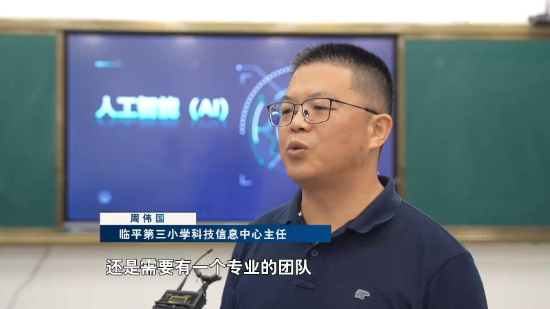 临平第三小学科技消息核心从任 周伟国:是有压力的。添加学生对人工智能手艺的丰硕的体验,孩子们正在沉浸式体验中感触感染人工智能的魅力。对中小学的教员相关可能要传授这门课程的教员做一个系统性的培训,我感觉像我们如许的仍是需要有一个专业的团队来给我们做一些专业上的,正在临平三小,